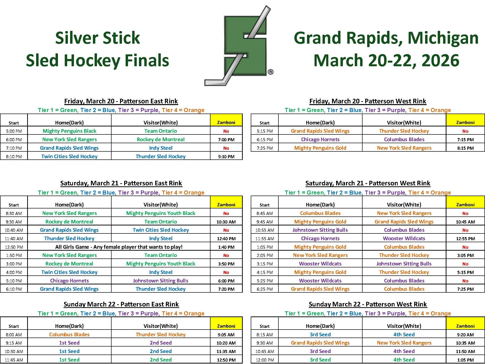 Sled Hockey Schedule